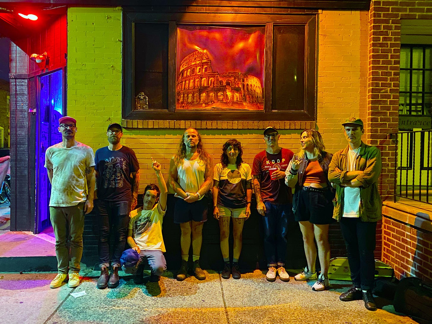 The group counts around ten regular members, but personnel shifts often depending on availability. Even on its current tour the line-up changes from night to night. For the Berlin show at Neue Zukunft on Sunday, September 7 the group will consist of Horne, Travis Austin, Nate Cross, George Dishner, Thor Harris, Danielle Hills, and Jeff Piwonka. Apart from Horne I only know about sometime Swans drummer Thor Harris and Nate Cross, the owner of Astral Spirits Records. But I don’t think that matters. Water Damage is an elastic collective that seems to be community-driven more than anything else, getting together and creating spaced-out time stretching music, primitive jams that could cycle into infinity. Some may hear this as little more than raw jamming, a kind of neanderthal Grateful Dead—which certainly sounds more appealing than the actual Dead. Still, the triumphantly simple, repetitive nature of the musical frameworks would support some version of that assessment. But to me it’s all about the churn, not just the relentless grooves that barely if ever deviate apart from how they’re articulate, but the constantly morphing texture of multiple instruments all failing away at the same chord in phrases the shift from one bar to the next. It’s mostly guitar levitating in that viscous sonic olio, which makes the violin of Mari Maurice (aka more eaze), who is sadly not on this date, or the saxophone of a guest musician like Patrick Shiroishi sound that much more striking.